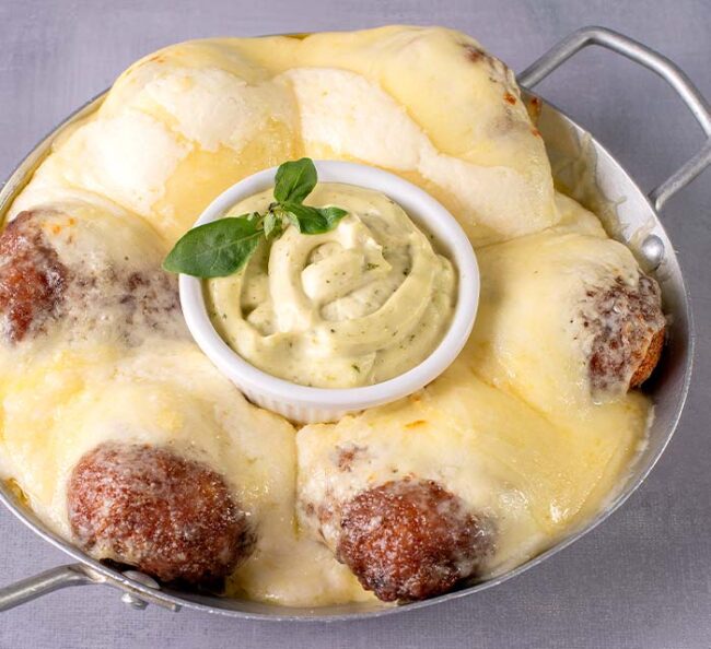 Mini Porpeta do Candreva Porpeta de carne moída e preparada em nossa produção com temperos especiais! Empanada na farinha de rosca e frita! Colocado por cima queijo mussarela derretido! Acompanha maionese temperada com manjericão fresco. Valor individual: R$56,90 Disponibilidade: Segunda a Domingo: das 11h00 às 23h Vote agora! Live Candreva Valinhos Mini Porpeta do Candreva…