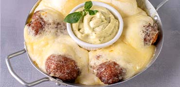 Acompanha maionese temperada com manjericão fresco.
